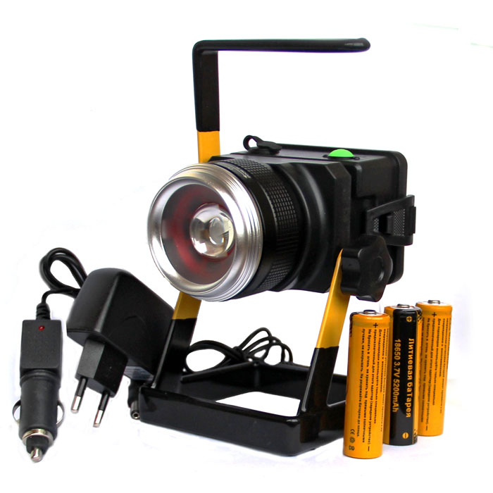 Автономный прожектор с защитой IP65. 3 аккумулятора позволяют прожектору работать до 12 часов непрерывно. Длина луча до 3х километров.