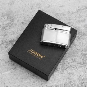 Бензиновая механическая зажигалка, автоматическая, стальная - JOBON (светло-серый)
