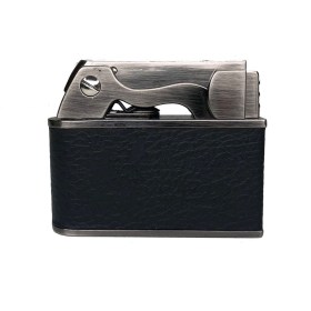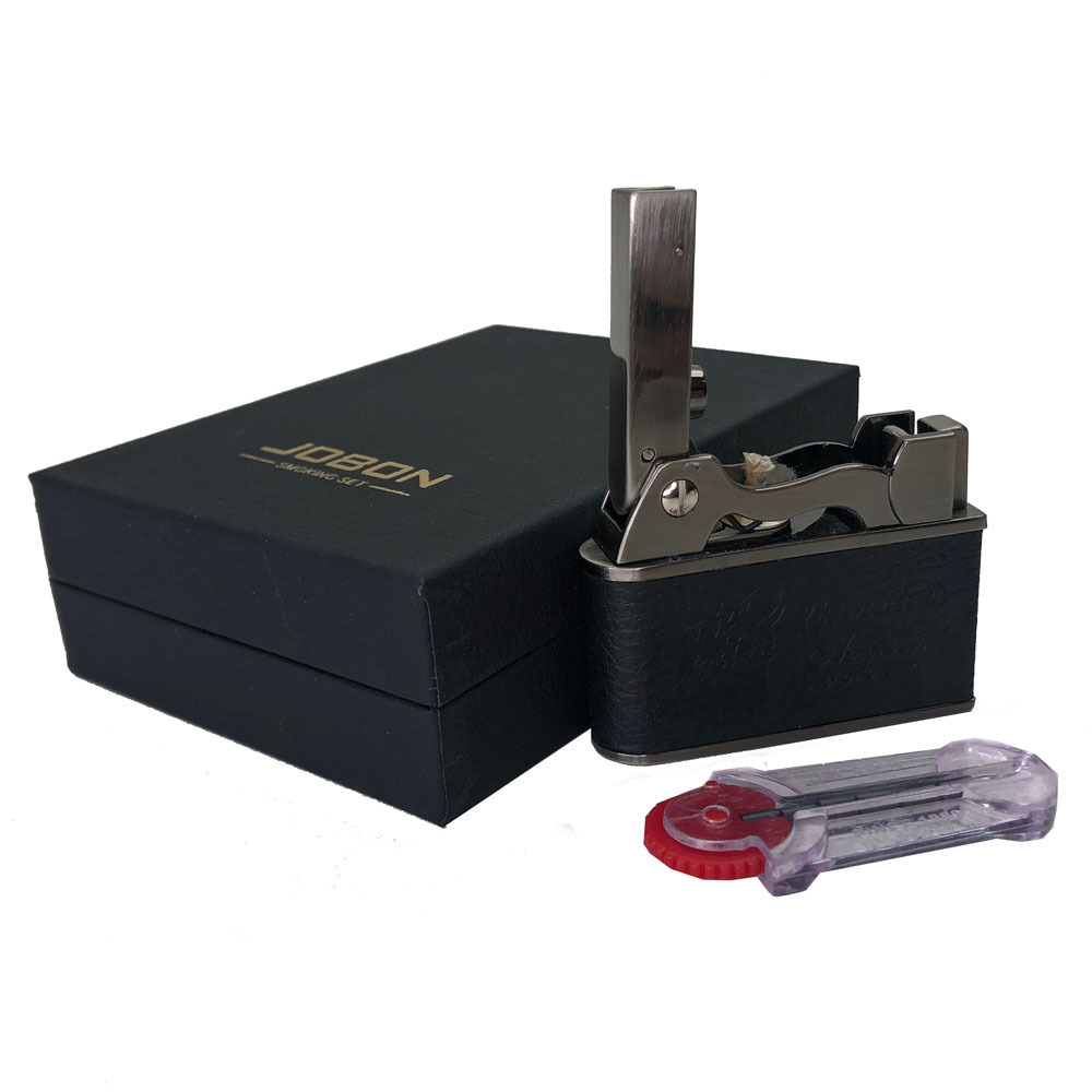 Бензиновая ветрозащитная зажигалка, автоматическая - металл и кожа, JOBON, черная