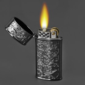 Стильная и прочная бензиновая зажигалка. Выполнена в винтажном стиле, с очень красивым объемным орнаментом "Акант".