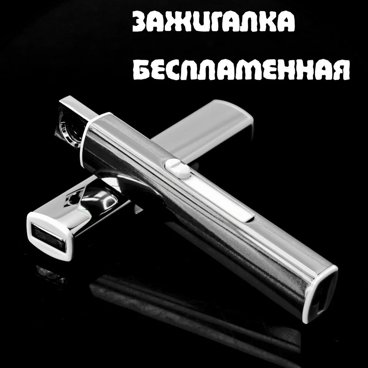 Беспламенная зажигалка ветрозащитная с портом USB металлическая (белый)