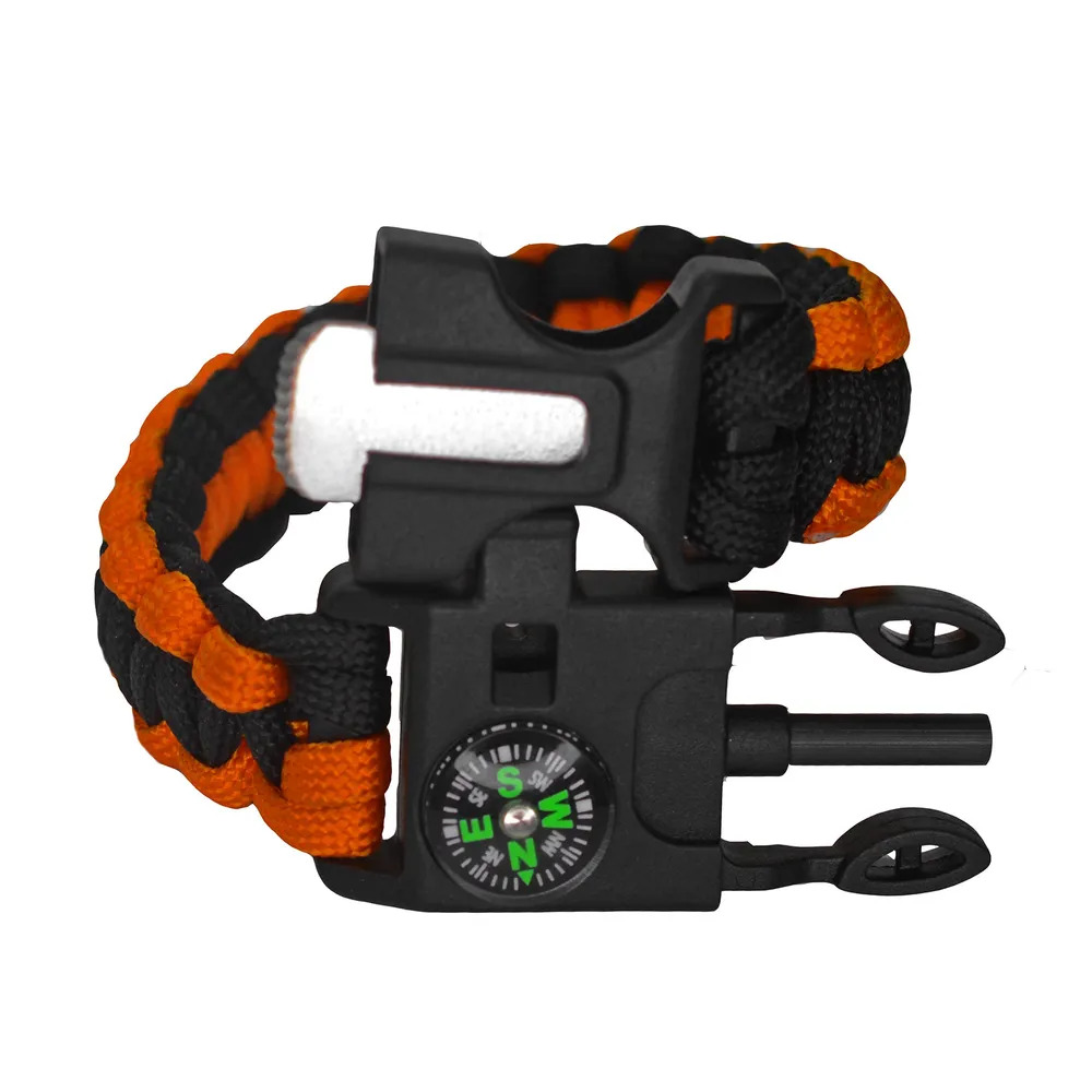 Браслет выживания из паракорда со свистком, огнивом и компасом (оранжевый)