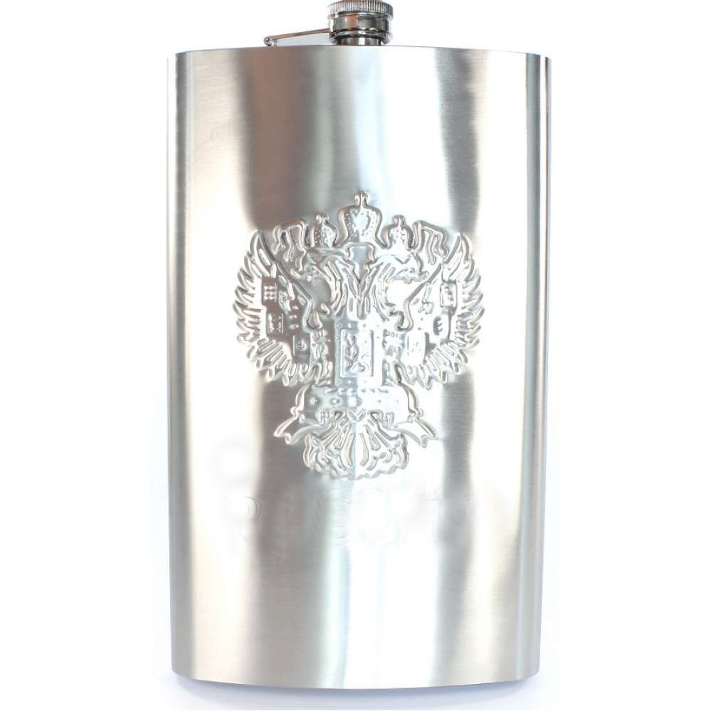 Большая фляжка из нержавеющей стали с иллюстрацией в виде российского герба. Красивая зеркальная поверхность серебристого цвета и рисунок придают изделию отличный внешний вид. Объём фляжки равен 500 мл. Она отлично подойдет для отдыха вдали от дома, например, для выезда на природу.