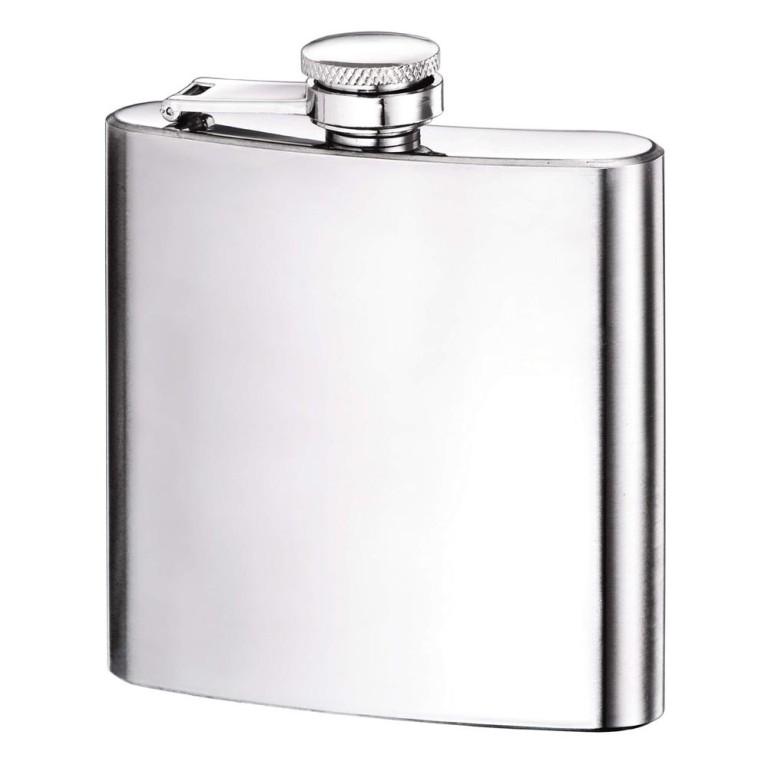 Среднегабаритная фляжка из нержавеющей стали. Имеет полированную серебристую поверхность, отражающую свет. Прочная и долговечная, не подвержена коррозийным процессам. Качественно выполненная крышка герметично закрывает ёмкость, не позволяя жидкости вытекать наружу.