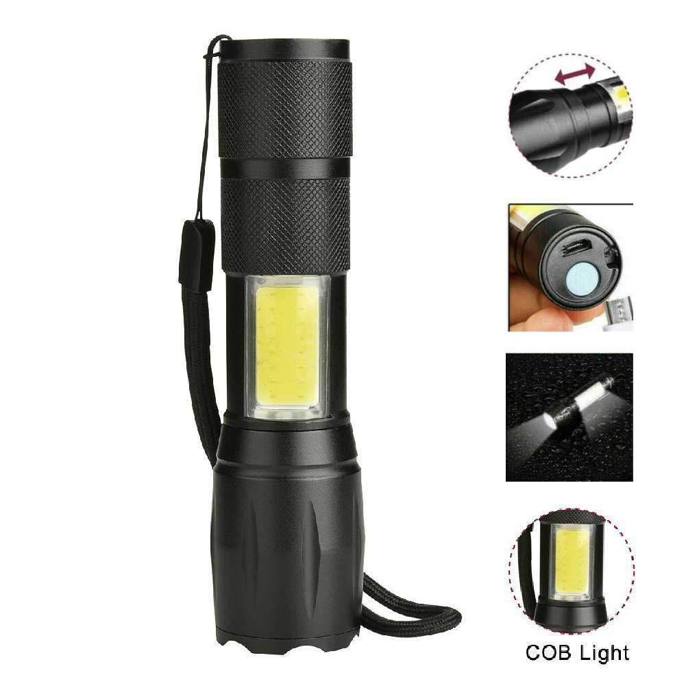 Яркий фонарь с зумом и зарядкой от USB. Имеет встроенный аккумулятор, но корпусе площадка с COB диодом .