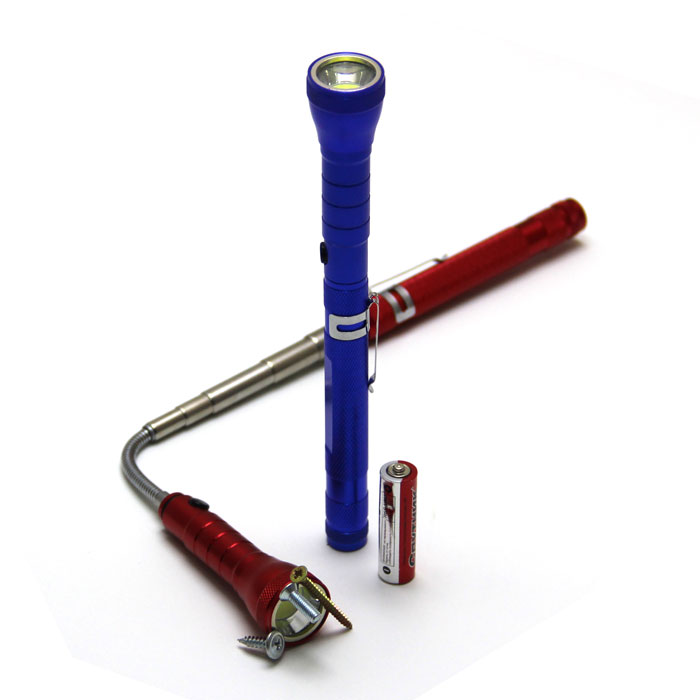 Телескопический фонарик с магнитом – в новом исполнении: работает от АА батарейки, и имеет яркий и экономный COB диод! Фонарик выполнен с телескопической выдвижной гибкой конструкцией, длинной и удобной алюминиевой ручкой, которая может выдвигаться на 60 см. – удобное и эффективное средство для освещения мест, куда не может протянуться рука человека со стандартным фонарем.