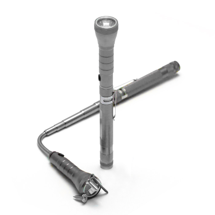 Телескопический выдвижной фонарик с магнитом – идеальное средство для освещения труднодоступных мест. Фонарик выполнен с телескопической выдвижной гибкой конструкцией, длинной и удобной алюминиевой ручкой, которая может выдвигаться на 60 см. – удобное и эффективное средство для освещения мест, куда не может протянуться рука человека со стандартным фонарем.