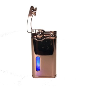 Газовая зажигалка турбо, стальная, с окошком топливника Steampunk (золотой)