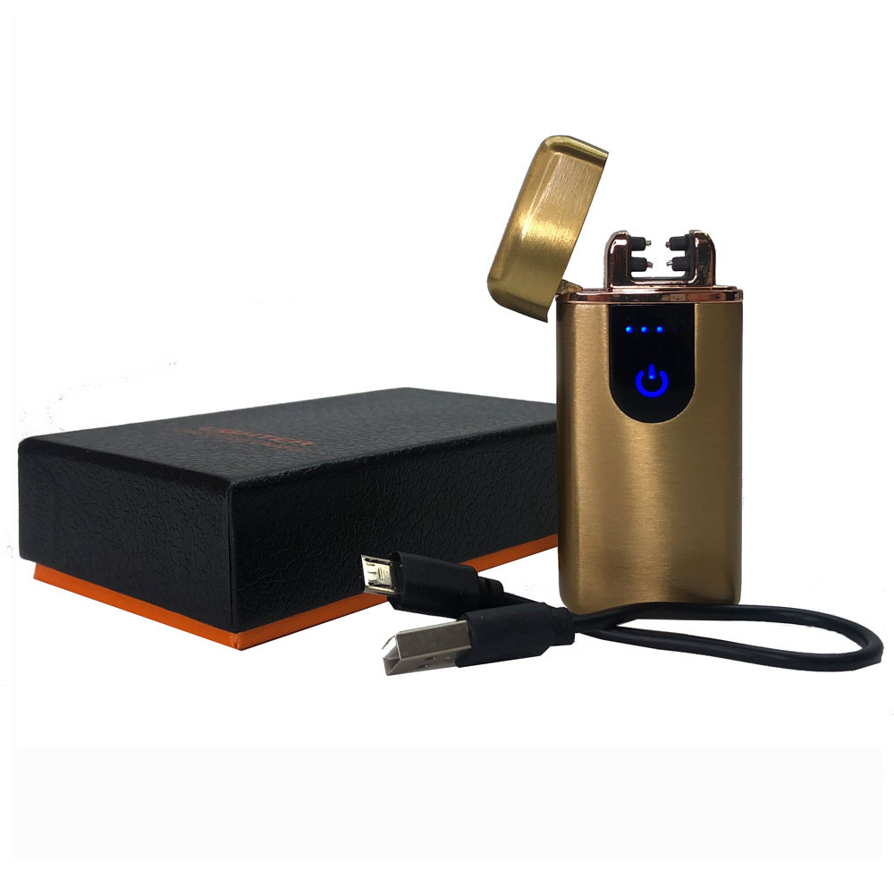 Импульсная электрическая USB зажигалка сенсорная две дуги, ветрозащитная (золотой)