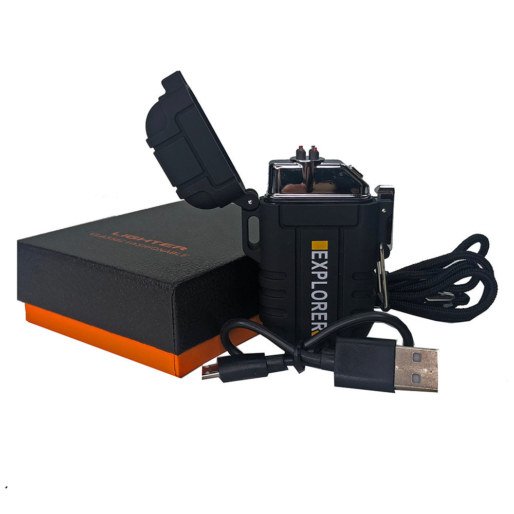 Импульсная USB зажигалка две дуги, ветрозащитная LIGHTER (черный)