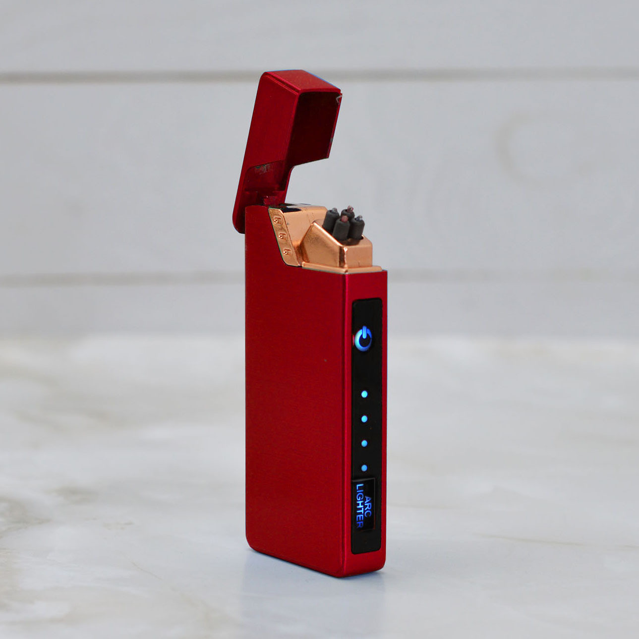 Импульсная USB зажигалка две дуги, ветрозащитная, плазменная, турбо-зажигалка LIGHTER (красный)