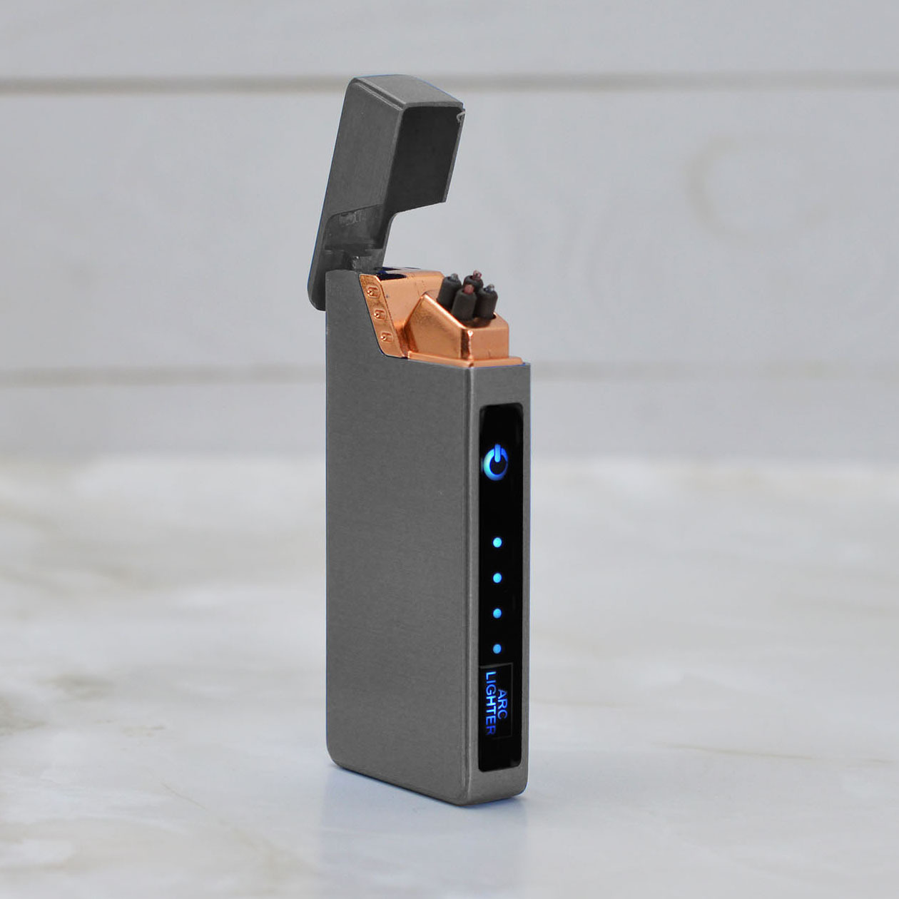 Импульсная USB зажигалка две дуги, ветрозащитная, плазменная, турбо-зажигалка LIGHTER (серый)