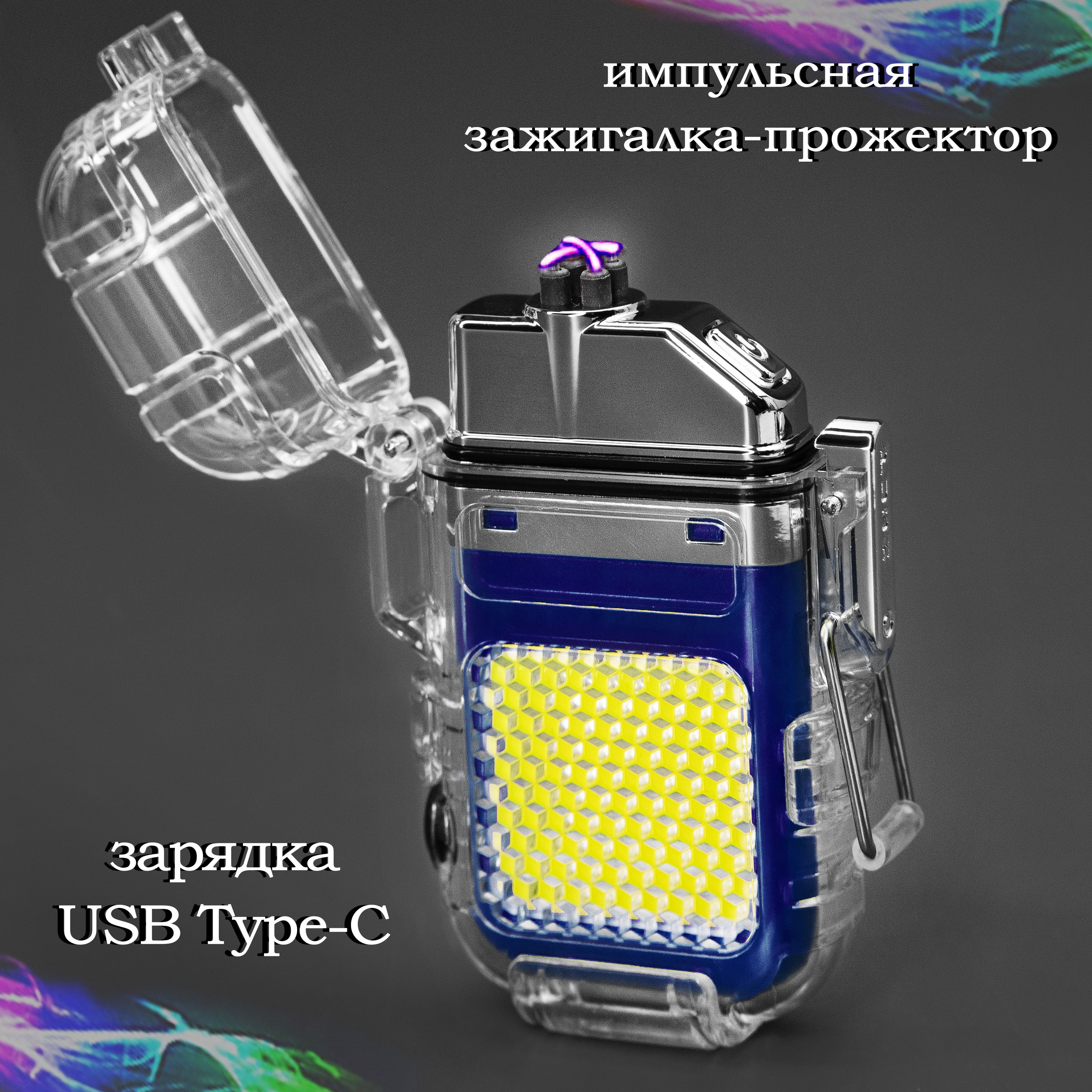 Комплектация: фирменная коробка, зажигалка-прожектор, кабель USB Type-C, ремешок на шею, руководство по использованию зажигалки (инструкция).