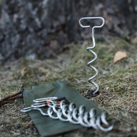 Винтовые (спиральные) колышки из пружинной стали для палатки, тента, крепления к земле снаряжения от ветров и ураганов. Единственный надежный вариант, крепления палатки в песке, снеге, рыхлом грунте.