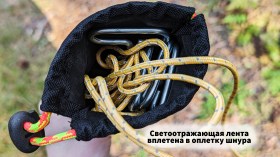 • Светоотражающая лента вплетена в оплетку шнура;