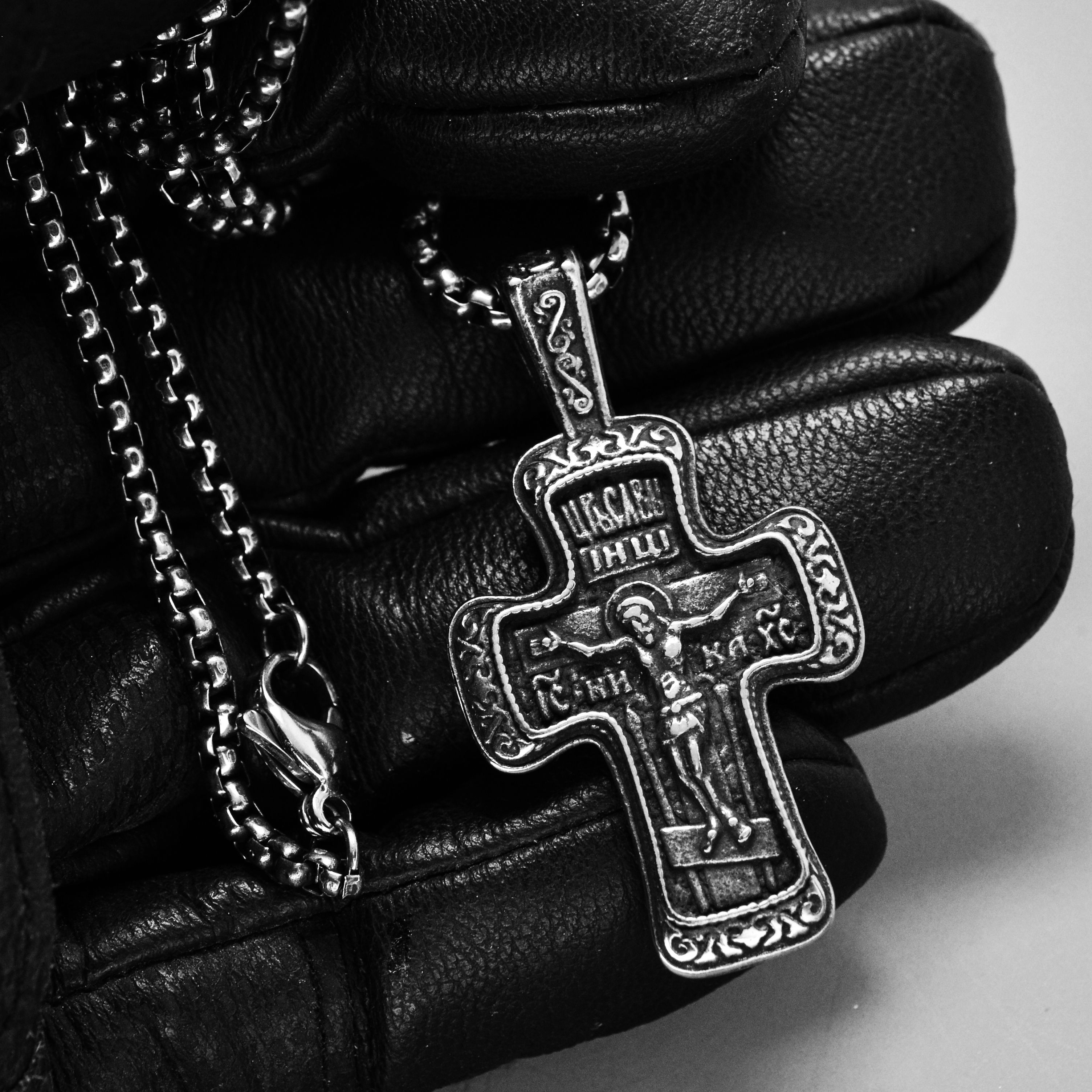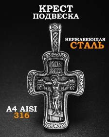Комплект: подвеска из нержавеющей стали AISI 316L и цепочка 60см / Кулон Крест "Распятие Христово"