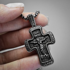 • Форма кулона: Крест Распятие Христово; молитва с обратной стороны креста;
