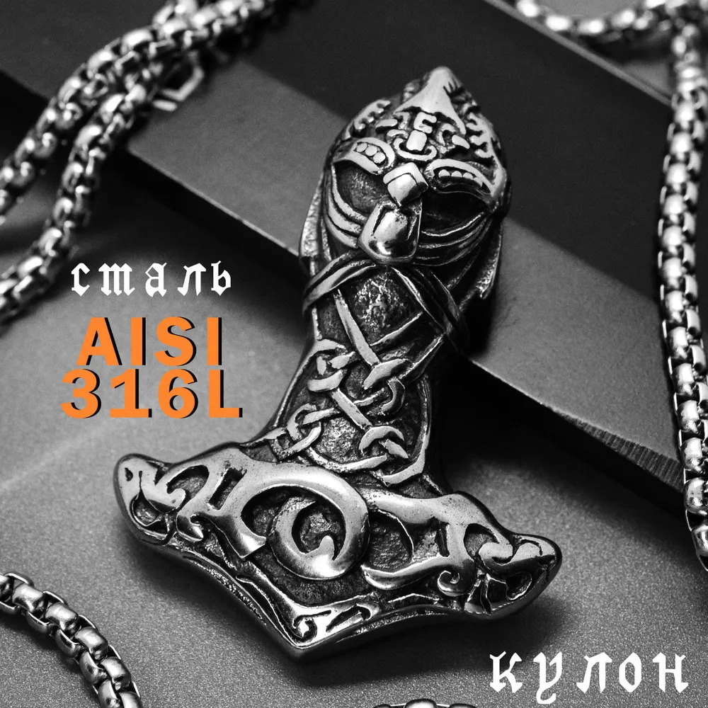 - Форма кулона: молот Тора, шлем викинга;