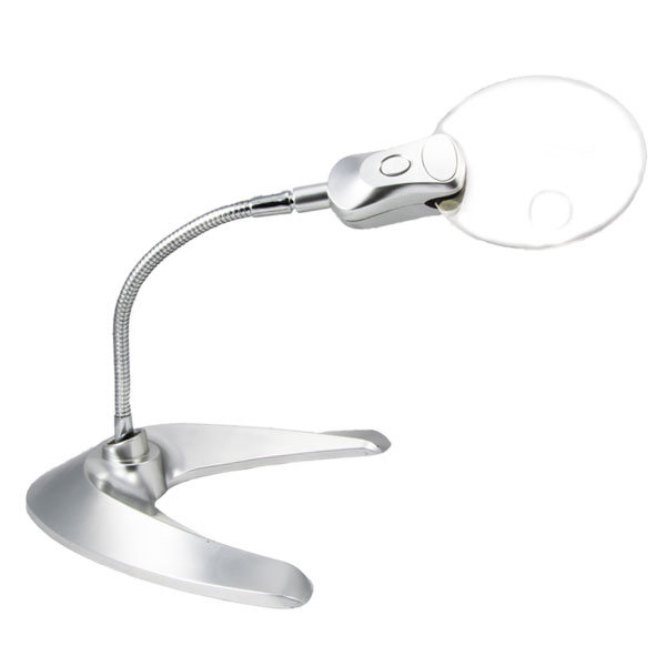 Этот прибор имеет оптическое увеличение в 2,3 раз, а наличие гибкой подставки и подсветка двумя светодиодами будет незаменимым помощником во время чтения книг. Лупа имеет диаметр 88 мм. и очень востребована среди ювелиров и коллекционеров.