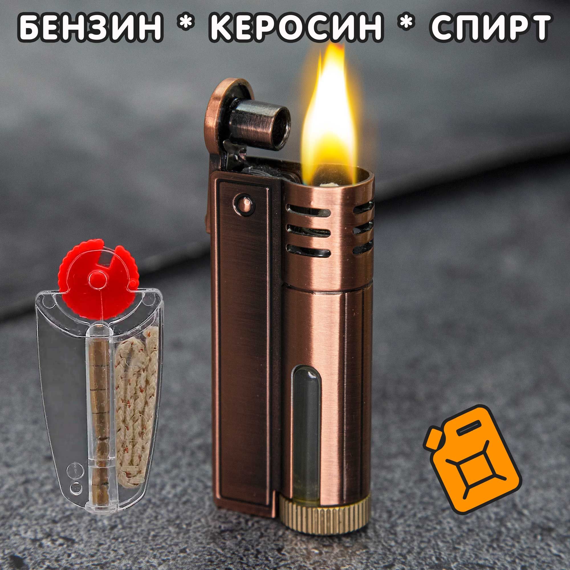 Мультитопливная бензиновая и спиртовая автоматическая зажигалка (бензин, спирт, керосин и т.п.) + фетиль и кремнии, Медь