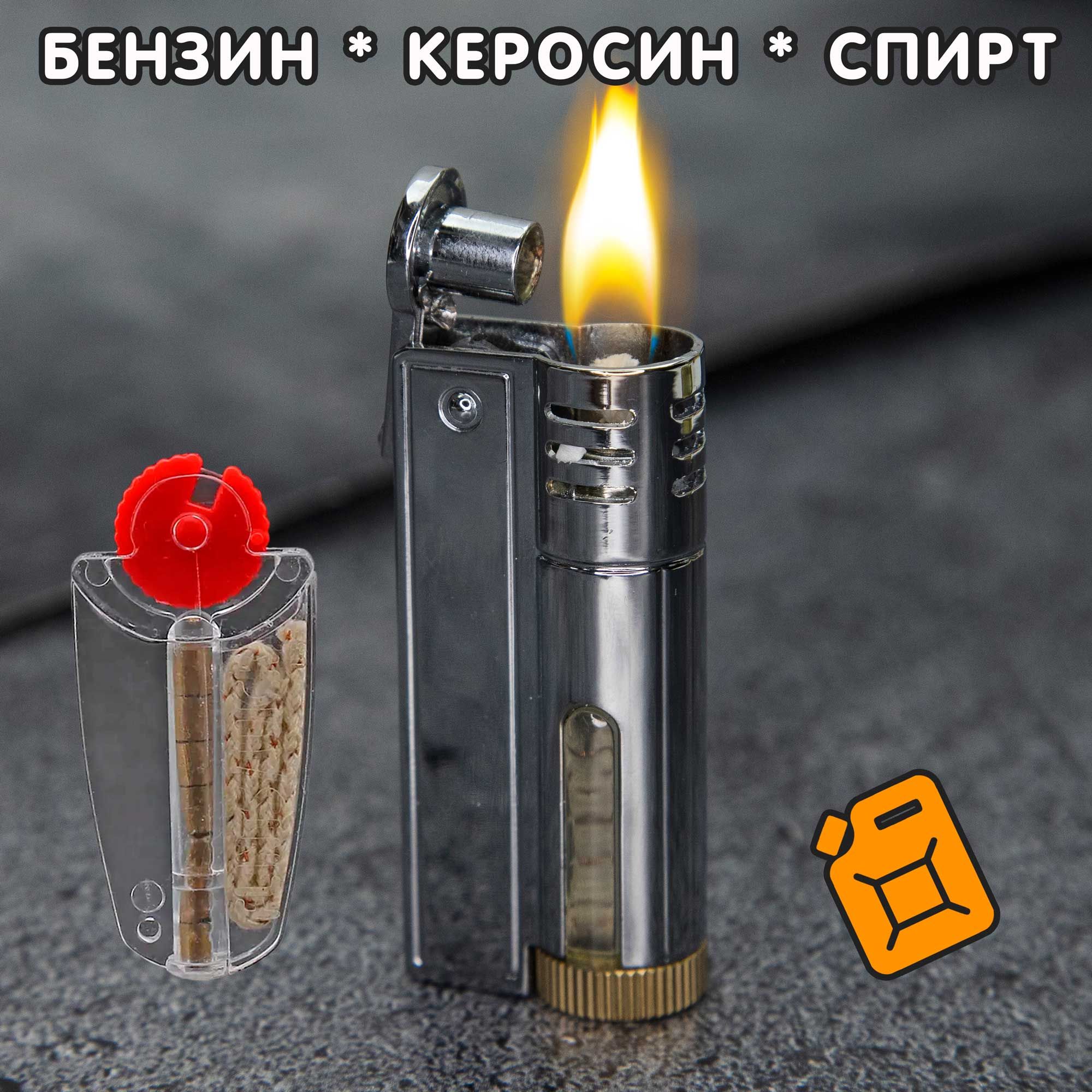 Мультитопливная бензиновая и спиртовая автоматическая зажигалка (бензин, спирт, керосин и т.п.) + фетиль и кремнии, Никель