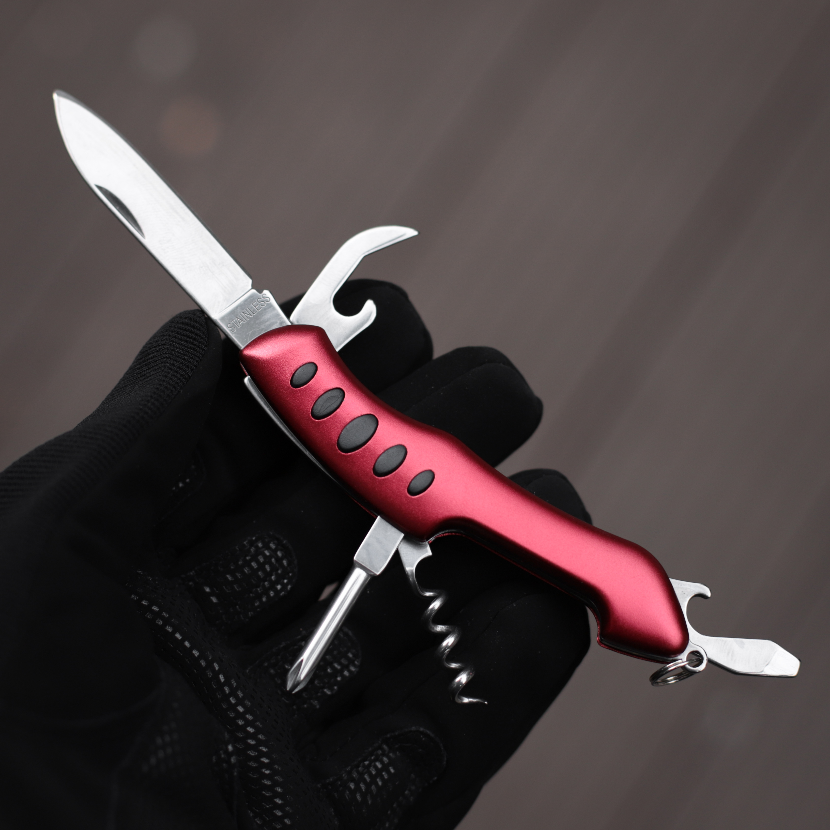 Мультитул 5 в 1 из нержавеющей стали/ Многофункциональный набор инструментов (красный)