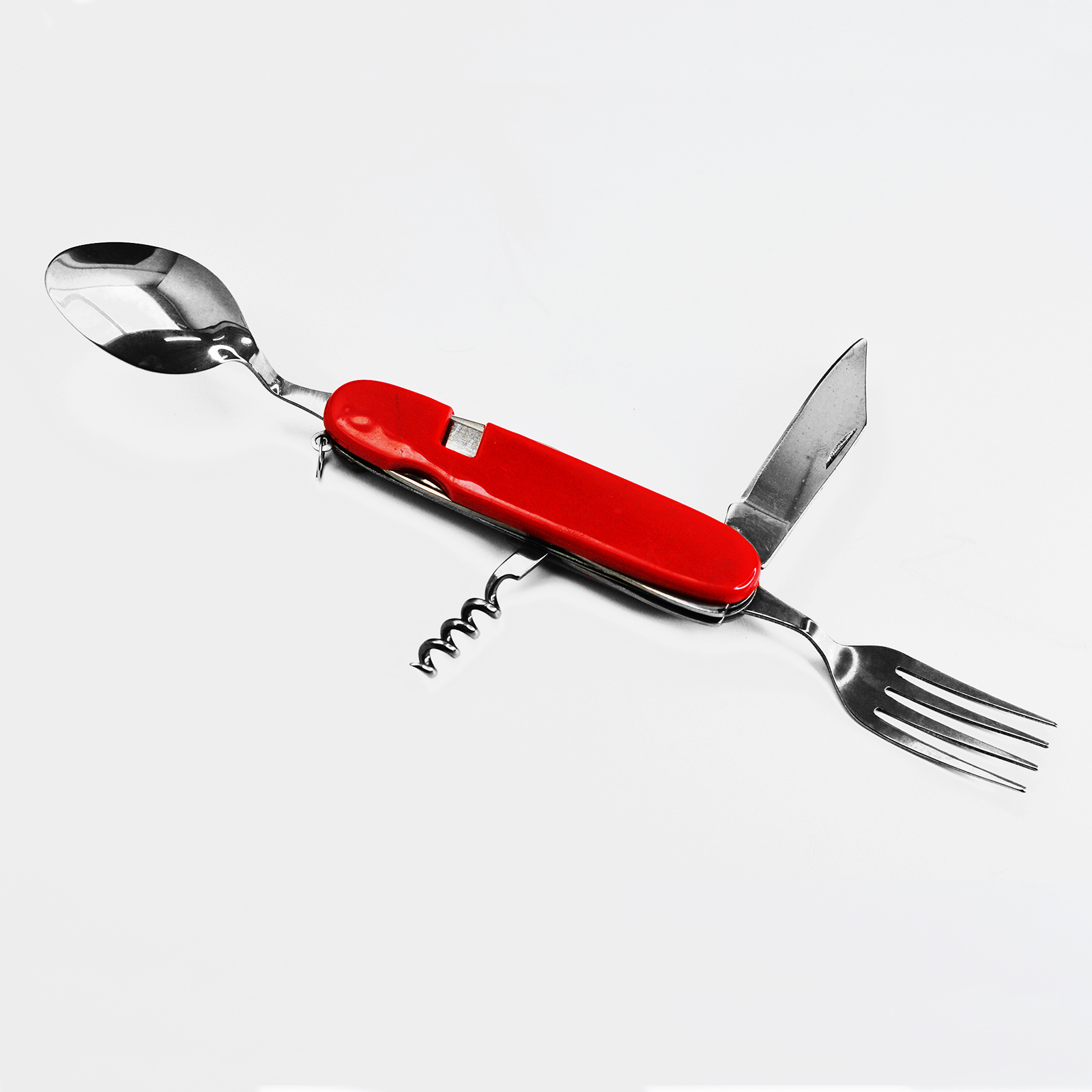 Мультитул походный ложка+вилка+штопор+нож стальные (красный)