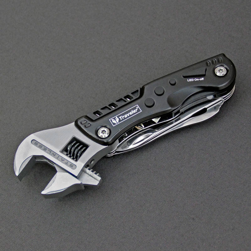 Мультиинструмент с разводным ключом Traveler ― сбалансированная модель по набору инструментов и качеству исполнения. Интересный дизайн, надежный материал, из которого изготовлена модель, достаточно легкий ― все это делает мультитул отличным решением для использования в качестве помощника.