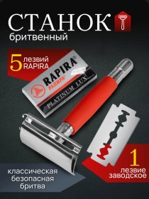5. Станок бритвенный классический безопасный + 1 заводское лезвие + 5 лезвий Rapira;