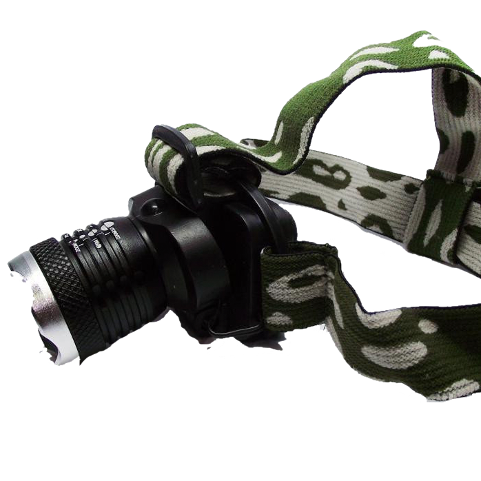 Налобный фонарь с зумом на диоде CREE Q5. Модуль фары защищен от попадания влаги вовнутрь. Однако аккумуляторный блок не является влагозащищенным.