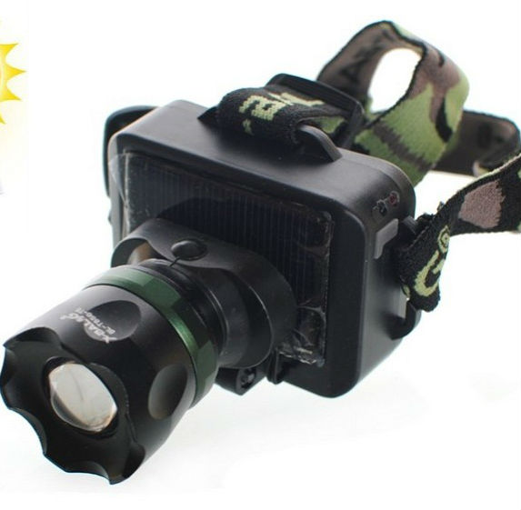 Светодиодный налобный фонарь BL-T856-T6 имеет питание от встроенного в корпус аккумулятора и может подзаряжаться от солнечной батареи.