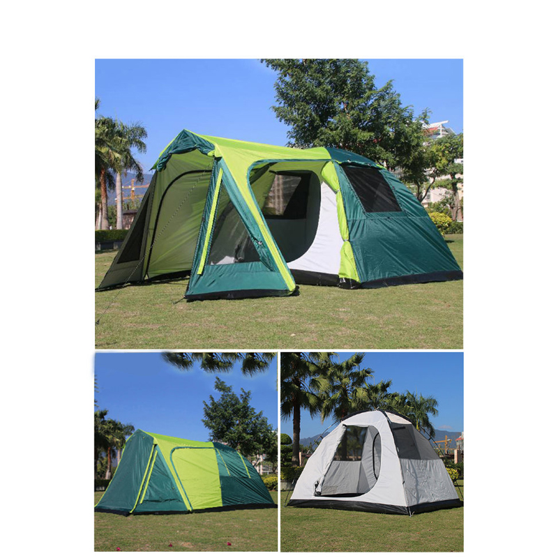 4-х местная высокая туристическая палатка увеличенный тамбур габаритные размеры 200см+240см*220см*190см ткань тента с серебристым покрытием Polyester 190T UP 3000мм. внутренняя палатка 100% дышащий Polyester дно палатки из Polyester 190T breath able&Polyester UP 4000мм. дуги выполнены из Fiberglass диаметром 9,5мм вес палатки 6,4кг. габариты палатки в сборке 65см*20см*20см палатка с двумя входами все швы проклеены антимоскитные сетки в палатке есть два кармана для мелочи и петля для лампы палатка комплектуется колышками и штормовыми растяжками