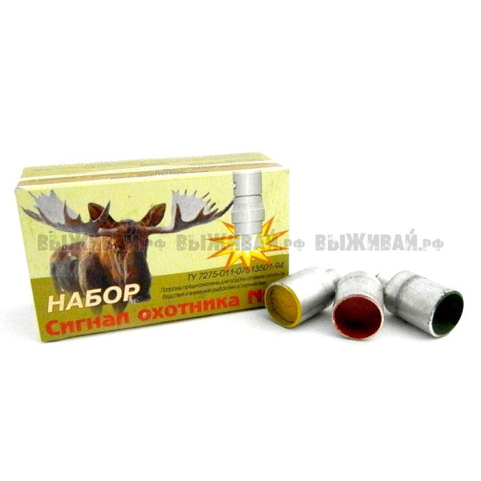 Набор патронов Сигнал Охотника №3 это набор пиротехнических ракет, выполненных в виде патронов. Сигнал Охотника №3 используется для подачи сигналов рыбаками, охотниками, туристами, спасателями и выживальщиками. Может быть использован для отпугивания диких животных или самообороны. В упаковке 15 ракет красного, зеленого и желтого цвета. Для запуска необходимо использовать пусковое устройство сигнал охотника.