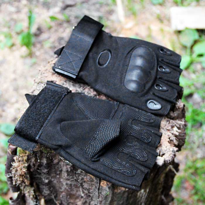 Перчатки тактические без пальцев с карбоновой защитой Black