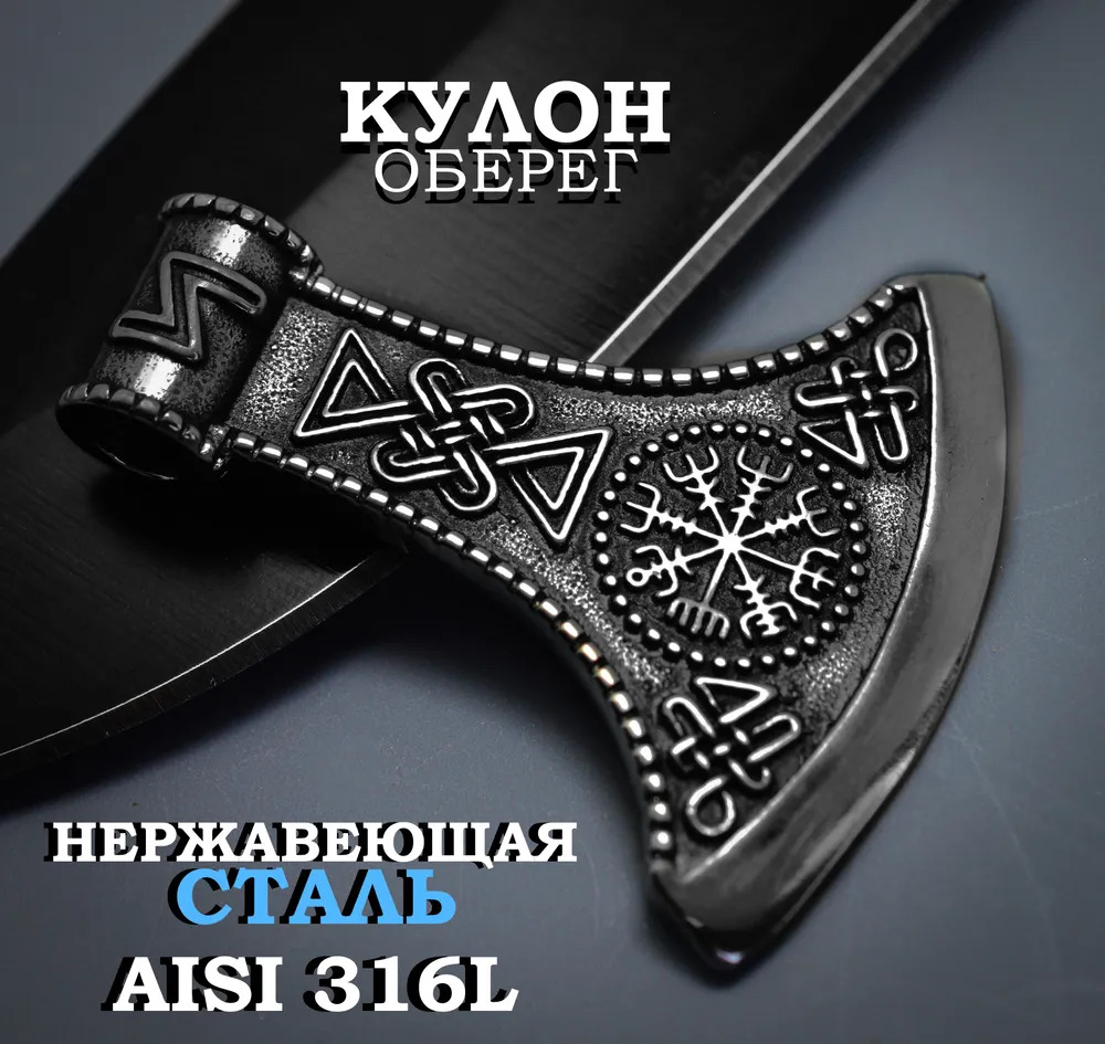 Подвеска из 100% нержавеющей стали А4 / Кулон из нержавейки "Секира Перуна"