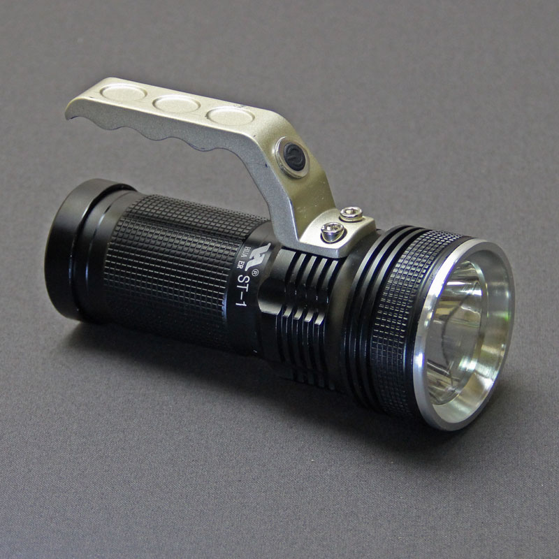Мощный светодиодный фонарь UltraFire ST-1 5000W изготовлен из алюминиевого, ударопрочного сплава, зарядка от сети 220В, зарядка от бортовой сети автомобиля, крепление на оружие