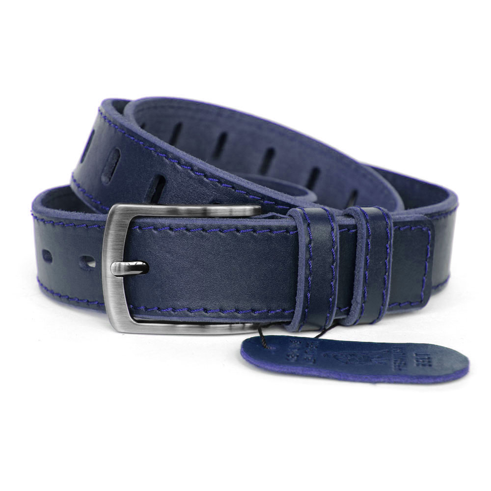 Ремень кожаный мужской Belt-Страйк 37мм тёмно-синий
