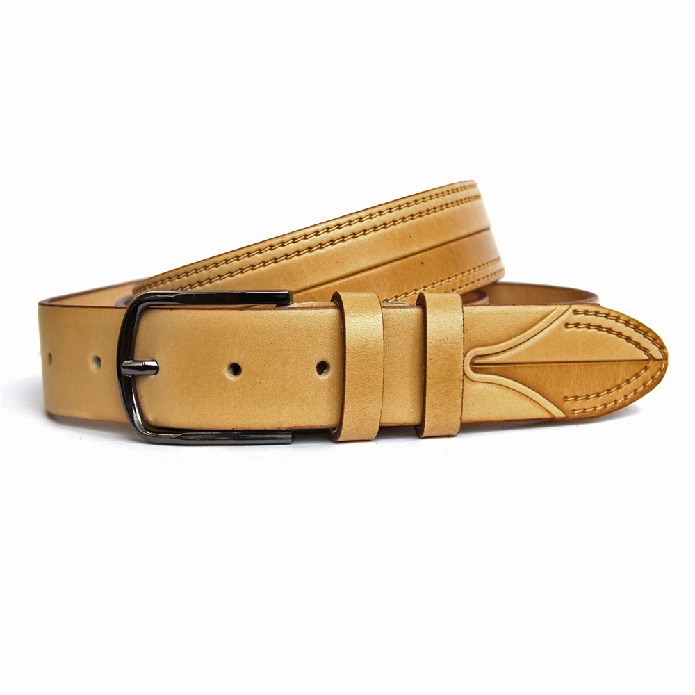 Ремень кожаный мужской Bora Belt 3,3см. т. бежевый