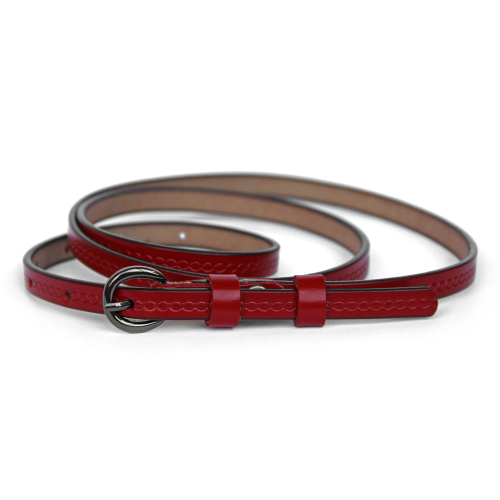 Ремень женский натуральная кожа Belt 1см, тёмно-красный