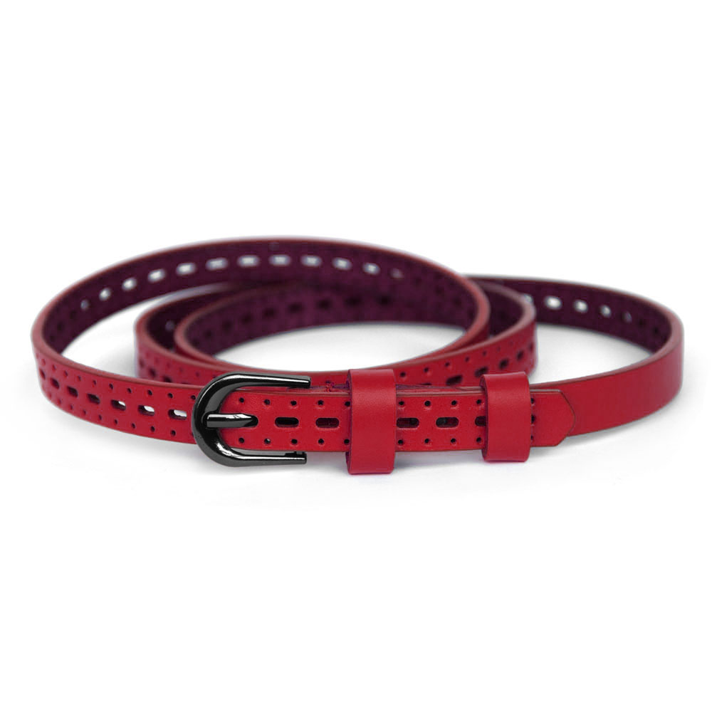 Ремень женский с перфорацией кожа Premium Belt 1.4cм красный