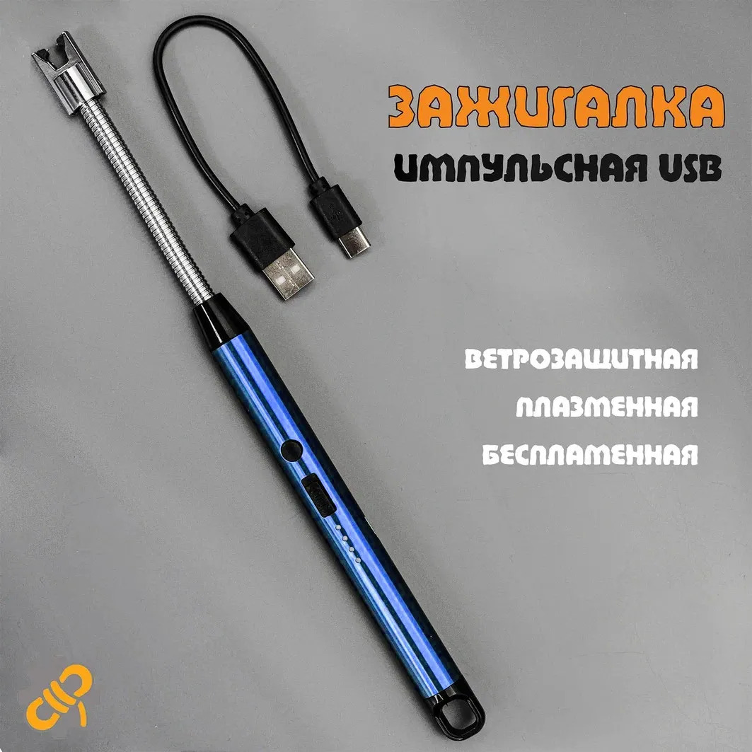 Зажигалка кухонная, импульсная USB дуговая , ветрозащитная, плазменная, беспламенная, для газовой плиты/барбекю XH-702B Синий