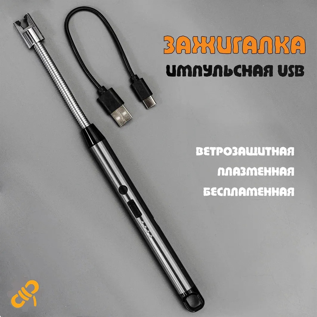 Зажигалка кухонная, импульсная USB дуговая , ветрозащитная, плазменная, беспламенная, для газовой плиты/барбекю XH-702B Серебристый