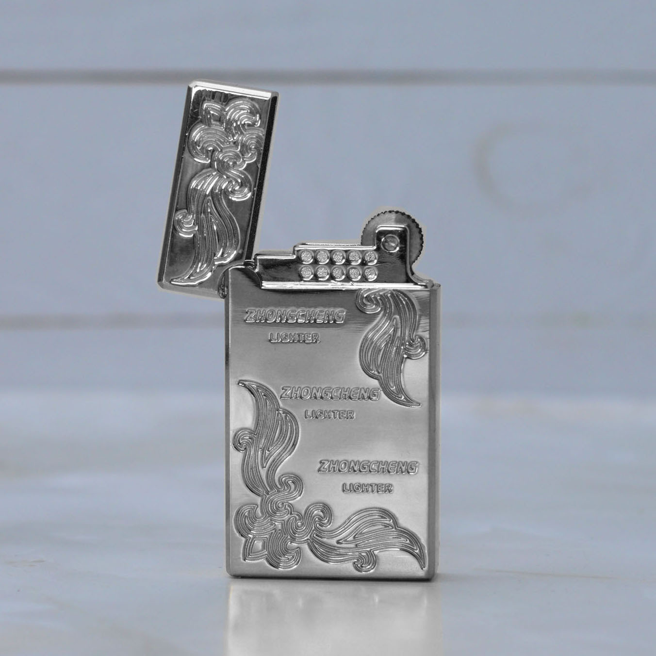 Стальная газовая зажигалка, ретро-стиль, латунь (серебристый)