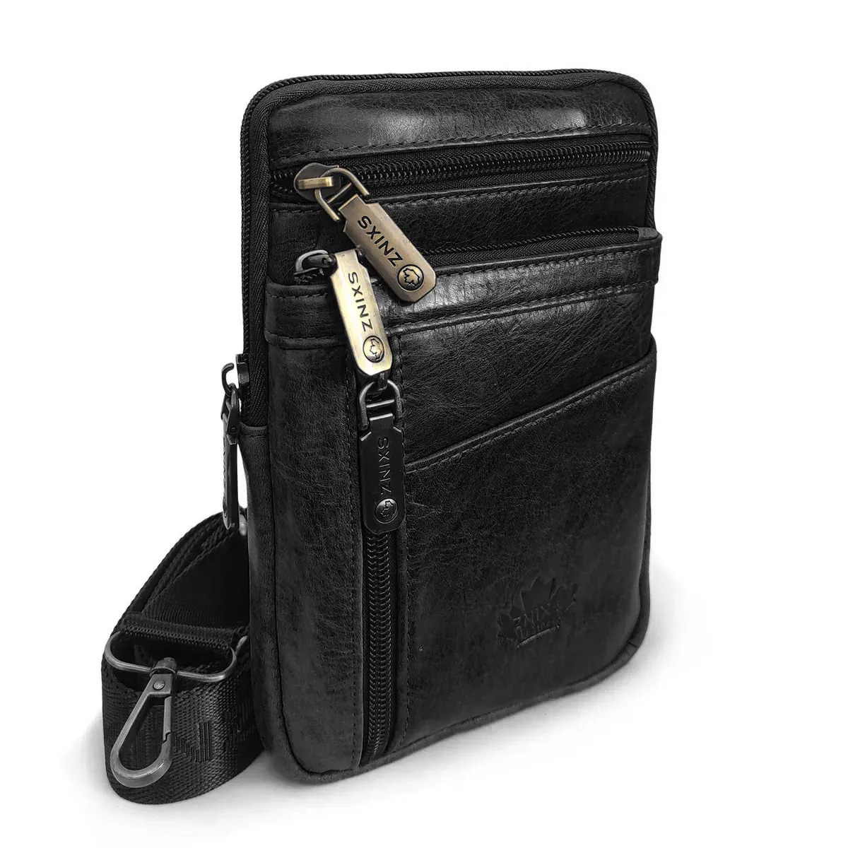 Сумка органайзер на пояс и через плечо, для кошелька, документов и телефона. Натуральная кожа, карабин, ремень Znixs 25015 черный