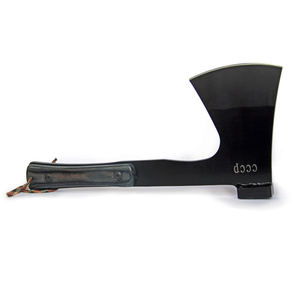 Мощный и надёжный топорик для выживания из цельного куска высококачественной стали, чехол для ношения на поясе, молоток, отверстие для петли. Плюсы топора его прочность, увесистость и качество стали.