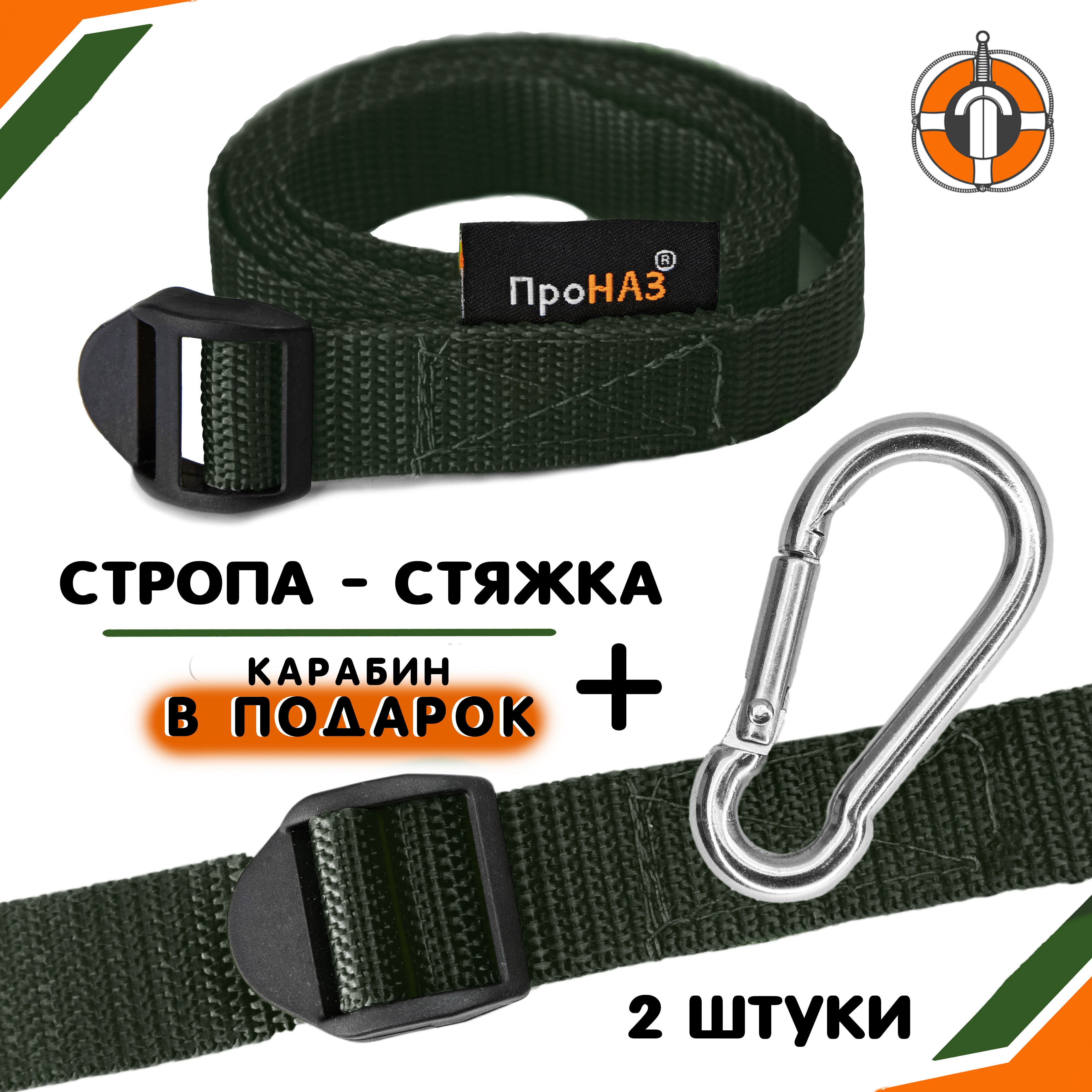Туристические стропы с пряжкой для крепления снаряжения + карабин из нержавейки / Стяжка для навесной фиксации груза и экипировки / Цвет "Олива", ширина 2 см, 2 шт