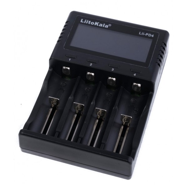 Данная модель может работать с различными типами цилиндрических аккумуляторов - от АА до С(R14) и от 10440 до 26650. Зарядное устройство Liitokala Lii PD4 оснащено большим дисплеем с подсветкой, на котором отображается тип заряжаемого аккумулятора, уровень заряда в %, ёмкость, напряжение, время заряда, зарядный ток, а также номер канала.