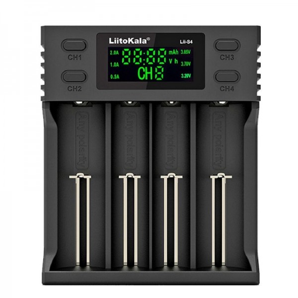 Зарядное устройство LiitoKala Lii-S4 (Черный) - универсальное, четырех-канальное, автоматическое зарядное устройство, совместимое практически со всеми цилиндрическими аккумуляторами, тем самым устраняющее необходимость использования нескольких зарядных устройств. Зарядное устройство Liitokala Lii S4 оснащено контрастным цифровым дисплеем, на котором отображается накопленная ёмкость, напряжение, ток заряда, тип аккумулятора, время работы и номер канала. Ток заряда Вы сможете задавать самостоятельно в диапазоне от 0.5 до 2 А.