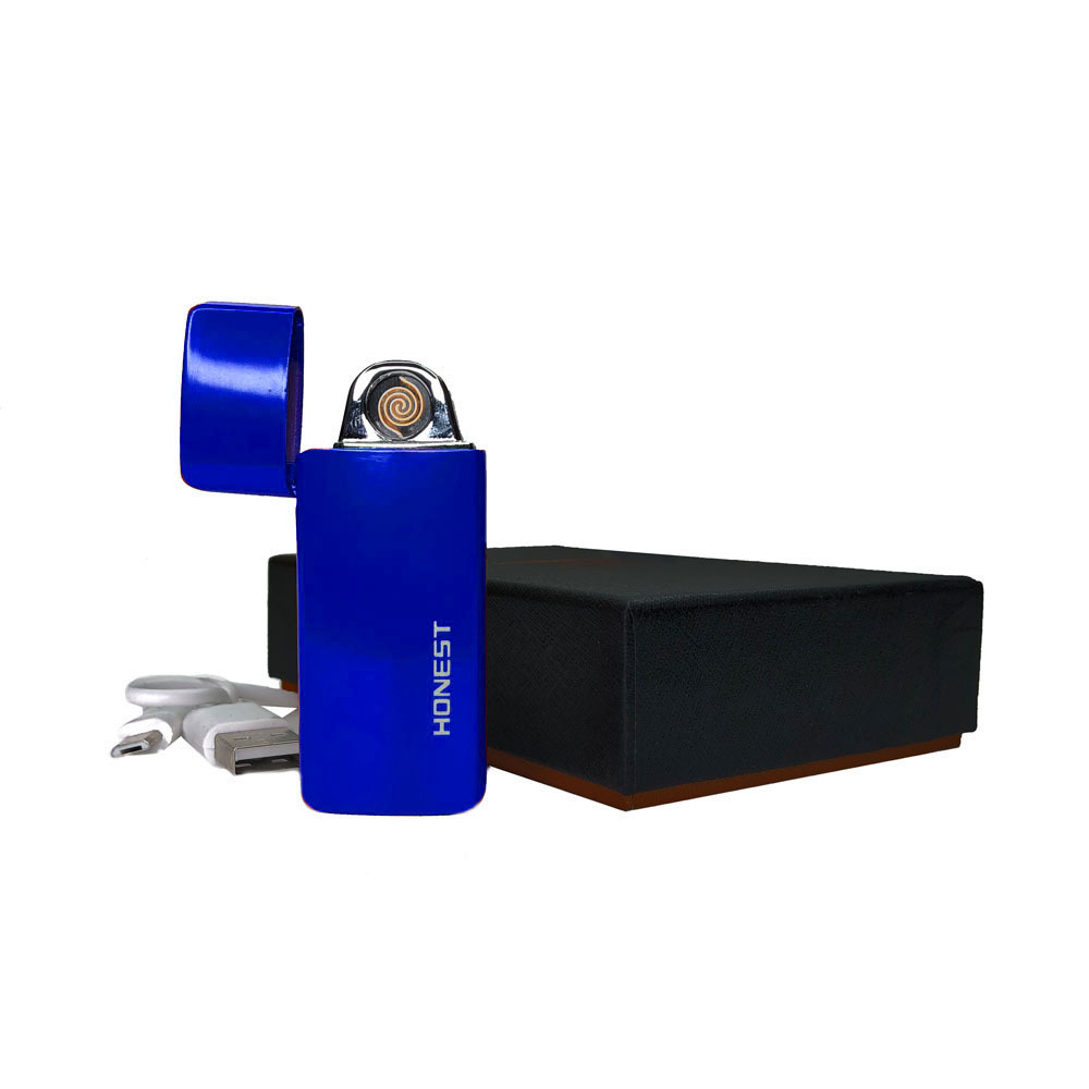 USB зажигалка спиральная ветрозащитная беспламенная электронная HONEST (синий)