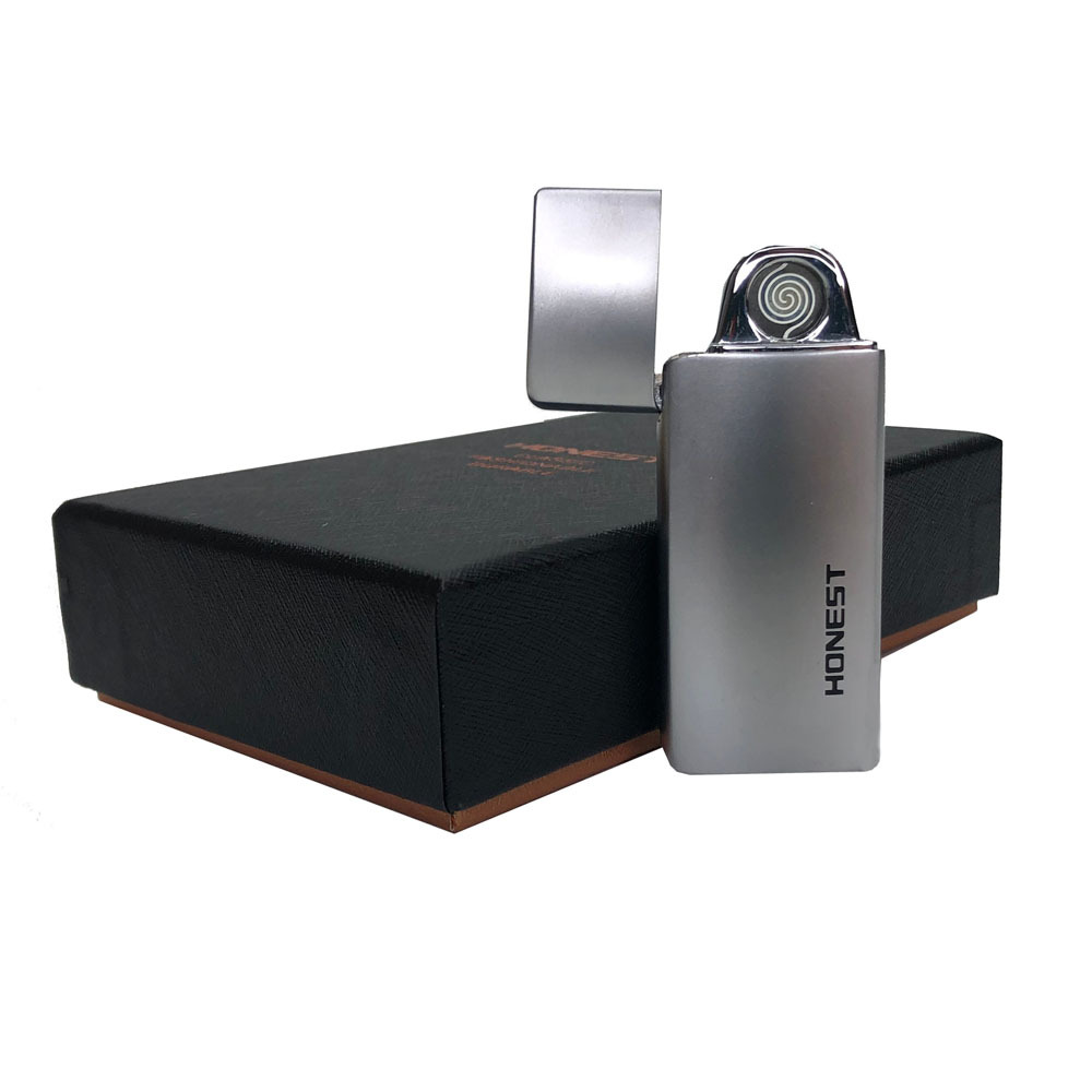 USB зажигалка спиральная ветрозащитная беспламенная электронная HONEST (светло-серый)